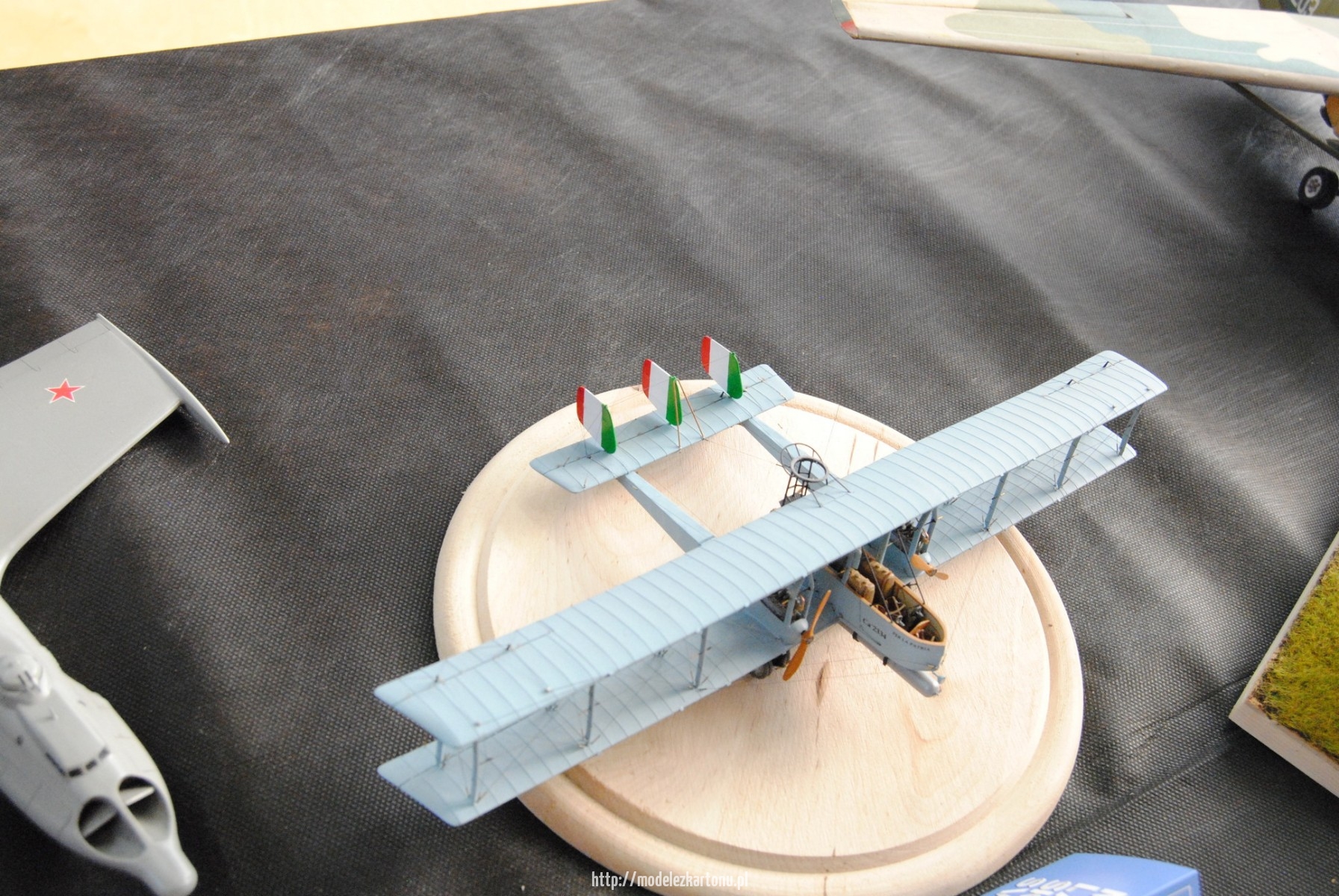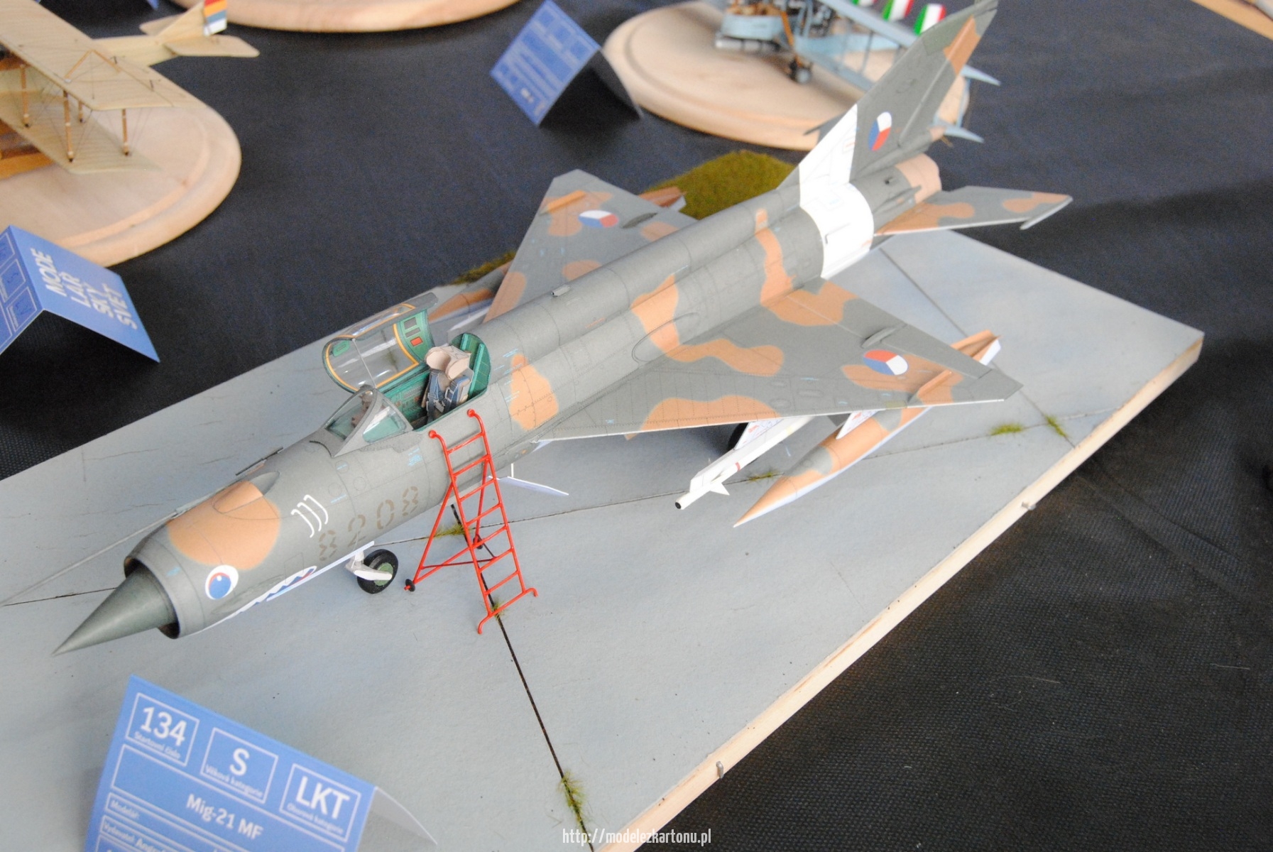 Oprócz konkursu – wiadomo – można kupić naprawdę wiele ciekawych modeli kartonowych (zwłaszcza modelarze kołowi i wielbiciele budowli mają w czym wybierać). Jest też stoisko z większością asortymentu firmy OLFA. Nie brakuje też drucików, kształtek poliestrowych, klei, farbek itp.