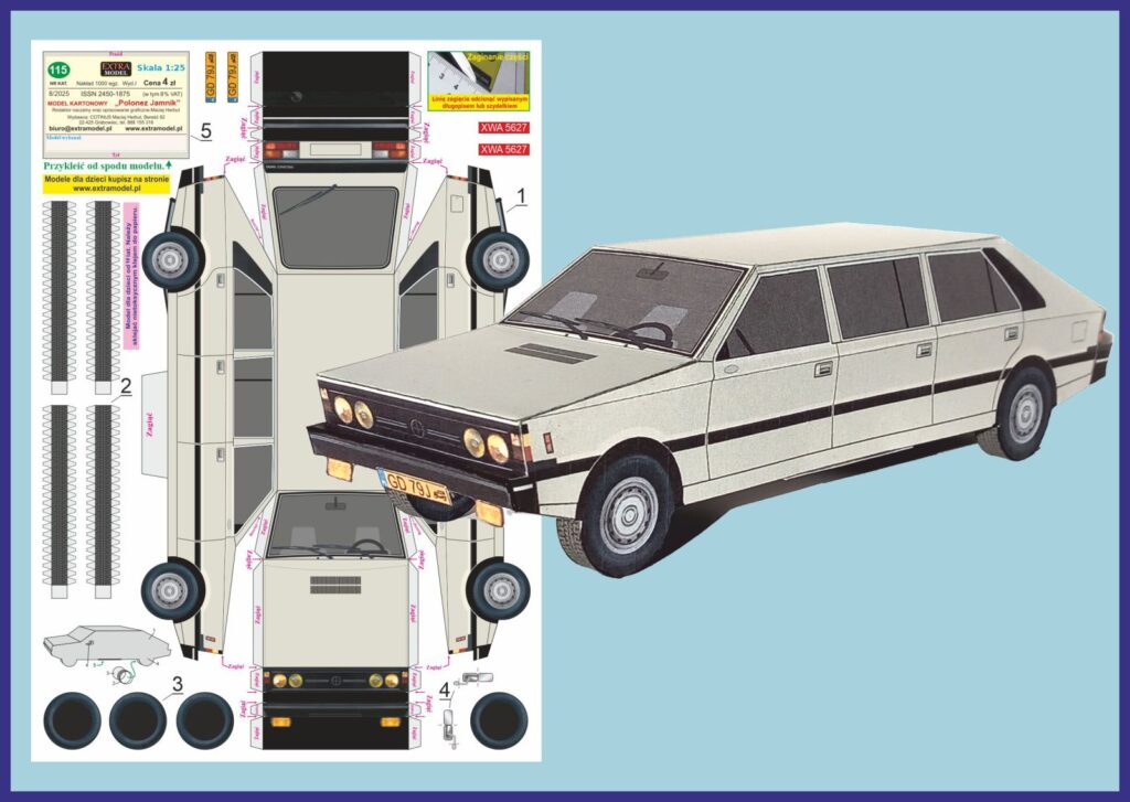 Wydawnictwo Extra Model z początkiem nowego roku przygotowało dla najmłodszych modelarzy kartonowych aż cztery modele samochodów w skali 1:25: Polonez Coupe, Polonez Jamnik, Polonez Akwarium oraz Maluch Bis.